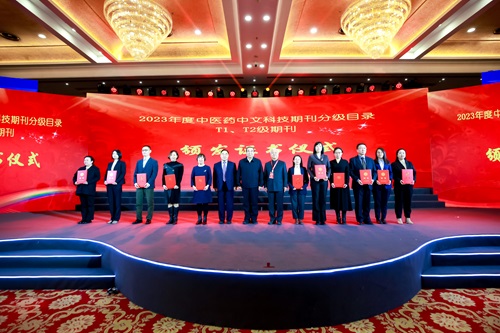 12月2日,由中華中醫(yī)藥學(xué)會主辦的“第六屆岐黃論壇”在北京會議中心舉行。論壇期間,第二屆中國中醫(yī)藥科技期刊做精做強(qiáng)專家組組長黃璐琦院士宣讀了入選2023年度中醫(yī)藥中文科技期刊分級目錄的期刊名單,其中11本期刊入選T1級中醫(yī)藥中文科技期刊目錄,44本期刊入選T2級中醫(yī)藥中文科技期刊目錄。中國工程院院士張伯禮教授、中國工程院院士叢斌教授和國醫(yī)大師王慶國教授為T1、T2級期刊代表頒發(fā)了入選證書。
