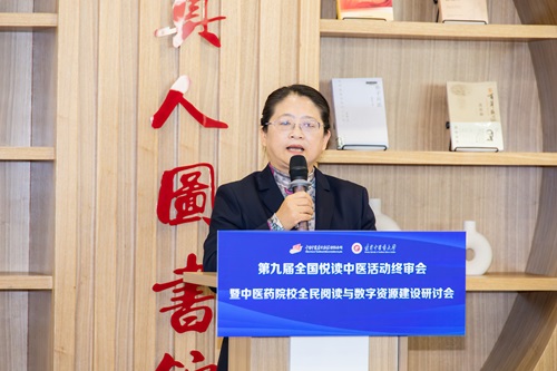 呂曉東在致辭中介紹了遼寧中醫(yī)藥大學(xué)建設(shè)發(fā)展的基本情況以及圖書館文化敘事空間改造工作方面取得的成效。她指出,全國(guó)悅讀中醫(yī)活動(dòng)不僅是文化傳承和知識(shí)傳播的過(guò)程,更是促進(jìn)中醫(yī)藥事業(yè)繁榮發(fā)展的重要舉措。數(shù)字賦能中醫(yī)藥文化建設(shè),對(duì)于普及中醫(yī)藥知識(shí)、推動(dòng)中醫(yī)藥教育與科研創(chuàng)新、提升中醫(yī)藥服務(wù)水平具有重要的意義。作為承辦方,學(xué)校高度重視會(huì)議的組織工作,切實(shí)加強(qiáng)服務(wù)保障,確保會(huì)議順利進(jìn)行。她深情期待會(huì)議的議題和終審的結(jié)果,期待閱讀數(shù)字領(lǐng)域的知名學(xué)者,共同探討如何更好地推進(jìn)中醫(yī)藥全民閱讀工作,激發(fā)全社會(huì)對(duì)中醫(yī)文化的熱愛和傳承。