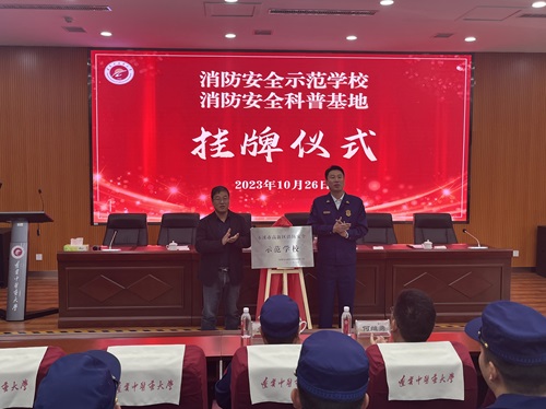 隨后,胡競(jìng)文、孫江波一同為消防安全示范學(xué)校、遼寧中醫(yī)藥大學(xué)校外消防安全科普示范基地揭牌。孫江波為胡競(jìng)文頒發(fā)遼寧中醫(yī)藥大學(xué)安全教育客座教授聘書。