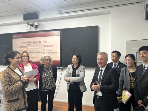 典禮結(jié)束后,學(xué)校領(lǐng)導(dǎo)陪同米歇爾·戴倫一行參觀了中外合作辦學(xué)教室、知行苑、菖蒲心居等地,并與中外合作辦學(xué)同學(xué)進(jìn)行了深入交流。
