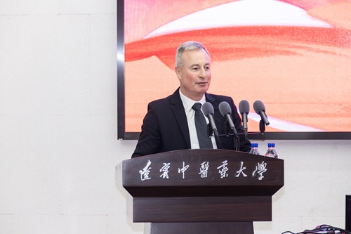 遼寧中醫(yī)藥大學(xué)黨委書記呂曉東致辭,向戴倫校長一行表示熱烈歡迎和誠摯問候。她指出,護(hù)理工作是全球衛(wèi)生健康事業(yè)的重要組成部分,國際護(hù)理人才更關(guān)系著全世界的生命健康福祉。我校護(hù)理學(xué)中外合作辦學(xué)項目,依托兩校優(yōu)質(zhì)的教育資源和豐富的教學(xué)經(jīng)驗,為同學(xué)們提供了拓展視野,增長知識的平臺。雙方合作至今,已聯(lián)合培養(yǎng)300多名具有國際化視野的護(hù)理學(xué)專業(yè)學(xué)生,今年9月份有多名優(yōu)秀學(xué)子赴國立新西蘭理工學(xué)院第四大區(qū)Ara坎特伯雷理工學(xué)院分校交流和深造,未來雙方將繼續(xù)開展多領(lǐng)域合作交流,聯(lián)合培養(yǎng)具有國際化視野的學(xué)術(shù)型與應(yīng)用型并重的護(hù)理人才。最后,呂曉東寄語2023級新生,鼓勵他們成為專業(yè)素養(yǎng)過硬,充滿愛心和責(zé)任感,富有國際競爭力的“白衣天使”。