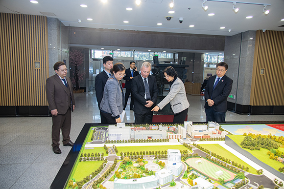 最后,雙方互贈(zèng)禮品并合影留念。會(huì)見(jiàn)后,代表團(tuán)一行參觀(guān)了學(xué)校圖書(shū)館,并在學(xué)術(shù)報(bào)告廳參加了護(hù)理學(xué)中外合作辦學(xué)項(xiàng)目2023級(jí)開(kāi)學(xué)典禮,呂曉東和米歇爾·戴倫分別在開(kāi)學(xué)典禮上致辭!