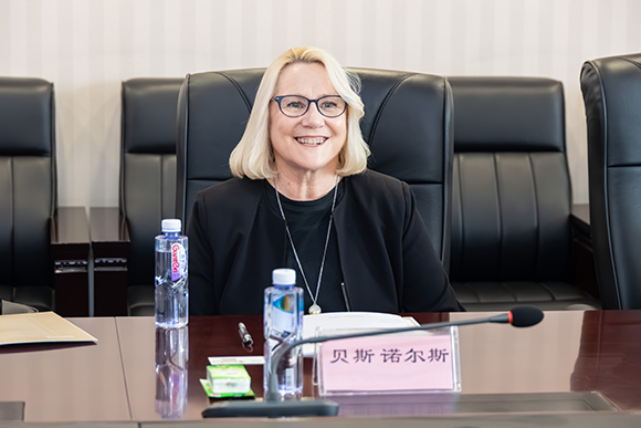 Beth Knowles代表國立新西蘭理工學院Ara坎特伯雷理工學院分校致辭,她感謝學校的熱情招待和細致安排,強調(diào)遼寧中醫(yī)藥大學師生流利的英語表達能力給她留下了深刻的印象。她表示,護理學合作辦學項目第一個培養(yǎng)周期即將進入尾聲,希望未來雙方能繼續(xù)推動護理合作辦學項目的開展。