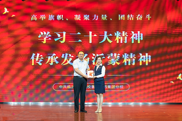 7月17日,學校邀請中共臨沂市委黨校魯南制藥分?!耙拭删瘛毙v團,在大學生活動中心舉辦《紅色沂蒙》藝術黨課宣講,學校黨委書記呂曉東、紀委書記張錦徽、副校長劉繼東、副校長戴旭出席。