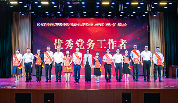 (學校領導為優(yōu)秀黨務工作者代表頒發(fā)榮譽證書)