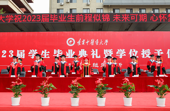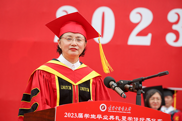 致辭中,呂曉東以中醫(yī)五行——木、火、土、金、水,作為畢業(yè)寄語(yǔ),向畢業(yè)生們寄予五點(diǎn)希望?!澳驹磺薄薄獔?jiān)定理想信念,不懼風(fēng)雨、從容前行,砥礪家國(guó)情懷。要把個(gè)人理想追求融入黨和國(guó)家事業(yè)之中,以家國(guó)天下之胸懷,闖星辰大海之征途,以沉穩(wěn)堅(jiān)韌之氣質(zhì),展風(fēng)雨無(wú)阻之姿態(tài)。“火曰炎上”——要激揚(yáng)青春熱情,征途不已、奮斗不止,實(shí)干開創(chuàng)未來(lái)。要以“功成不必在我,功成必定有我”之情懷和信心,以“不盡狂瀾走滄海,一拳天與壓潮頭”的毅力和勇氣,去夢(mèng)、去闖、去拼,隨滔滔理想之河,創(chuàng)造世界與未來(lái)。“土爰稼穡”——要崇尚德行天下,大醫(yī)精誠(chéng)、挺膺擔(dān)當(dāng),造福人民健康。要謹(jǐn)記“厚德博學(xué)、繼承創(chuàng)新”的校訓(xùn),傳承中醫(yī)人奮發(fā)前進(jìn)的精神力量,在“健康中國(guó)”的發(fā)展新時(shí)代,守住醫(yī)者的柔情,挺直醫(yī)者的脊梁,為祖國(guó)中醫(yī)藥事業(yè)的發(fā)展和人民健康矢志不渝?!敖鹪粡母铩薄懹涀孕拮哉思荷鳘?dú)、明善誠(chéng)身,涵養(yǎng)高尚品格。要涵養(yǎng)溫良品格,仰無(wú)愧于天、俯不怍于地,心有所畏,言有所戒,行有所止,清清白白做人、干干凈凈做事,在新時(shí)代新征程上走好每一步。“水曰潤(rùn)下”——要爭(zhēng)做有為青年,因時(shí)而動(dòng)、順勢(shì)而為,擔(dān)當(dāng)時(shí)代大任。要行道如水,因時(shí)而動(dòng)、順勢(shì)而為,與新時(shí)代同向同行!胸懷“國(guó)之大者”,以青春之我,奉獻(xiàn)偉大時(shí)代,不負(fù)黨的期望、國(guó)家的重托。
