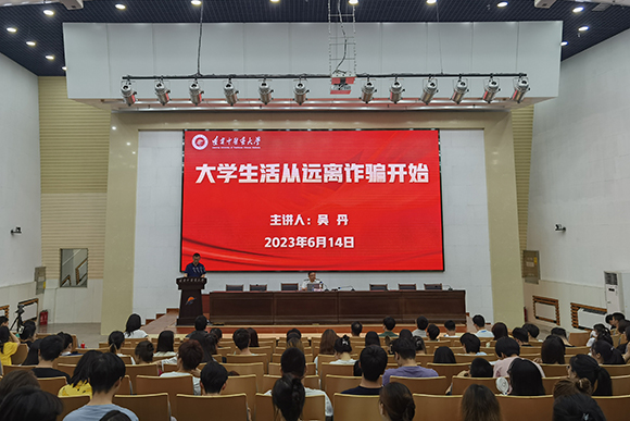 6月14日,學校舉辦大學生誠信教育與防范電信網(wǎng)絡詐騙報告會,中國刑事警察學院經(jīng)濟犯罪偵查學院院長吳丹應邀作專題輔導報告。報告會以線上線下相結(jié)合方式進行,3000余名師生參加。