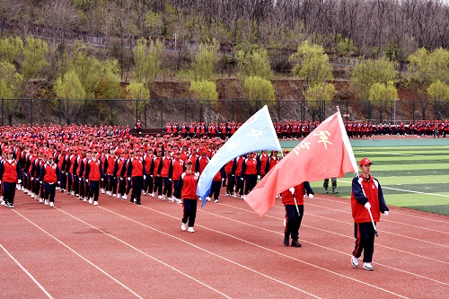 如果信念有顏色,那么一定是中國紅。由300名參訓(xùn)學(xué)生組成的旗海呈現(xiàn)在操場上,伴隨著全場齊唱《強(qiáng)軍戰(zhàn)歌》的歌聲不斷變化陣型,展現(xiàn)了同學(xué)們的激情與活力,傳遞出濃厚的家國情懷。