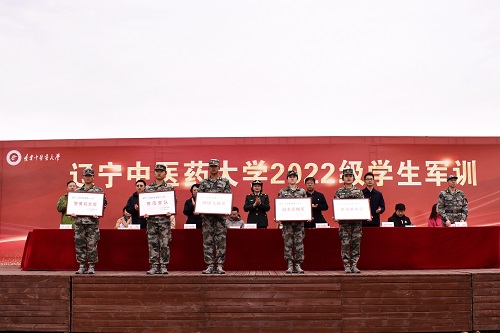 與會(huì)領(lǐng)導(dǎo)為優(yōu)秀集體、優(yōu)秀學(xué)員頒獎(jiǎng)。軍訓(xùn)二營針灸推拿學(xué)院獲“模范營隊(duì)”榮譽(yù)稱號(hào),軍訓(xùn)一營中醫(yī)學(xué)院獲智勇雙全獎(jiǎng),軍訓(xùn)三營中西醫(yī)結(jié)合學(xué)院獲追求卓越獎(jiǎng),軍訓(xùn)四營經(jīng)濟(jì)管理學(xué)院、信息工程學(xué)院、外國語學(xué)院、醫(yī)學(xué)檢驗(yàn)學(xué)院、實(shí)驗(yàn)動(dòng)物醫(yī)學(xué)與科學(xué)學(xué)院獲激情飛揚(yáng)獎(jiǎng),軍訓(xùn)五營護(hù)理學(xué)院獲雄姿英發(fā)獎(jiǎng),大連校區(qū)軍訓(xùn)六營獲“優(yōu)秀營隊(duì)”榮譽(yù)稱號(hào)。共有89名學(xué)生榮獲優(yōu)秀學(xué)員。