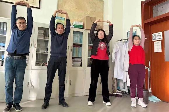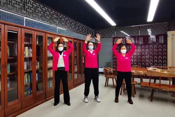 沈陽校區(qū)教職工通過現(xiàn)場微信掃碼打卡簽到進(jìn)行“八段錦”健身功法的學(xué)習(xí),大連校區(qū)和本溪校區(qū)教職工分別通過線上播放視頻和線下教學(xué)同步進(jìn)行學(xué)習(xí)。