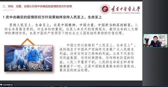 石書記深入解讀了近幾年習(xí)近平總書記關(guān)于疫情防控的重要講話,結(jié)合當前疫情形勢,對我們進行了講授,使我受益匪淺。學(xué)校在封閉管理期間組織各種活動,豐富同學(xué)們的課余生活,保障了同學(xué)們?nèi)粘5慕】碉嬍常M織一日三報確保每位同學(xué)每天的身體狀態(tài)沒有出現(xiàn)異常。在此向?qū)W校領(lǐng)導(dǎo)以及一直奮戰(zhàn)在一線的輔導(dǎo)員老師們表示感謝!我們要充分利用時間,在學(xué)好、學(xué)精專業(yè)知識的同時,不斷地豐富自己,準備好為祖國的醫(yī)藥事業(yè)做出自己的一份貢獻!——藥學(xué)院 李 曦