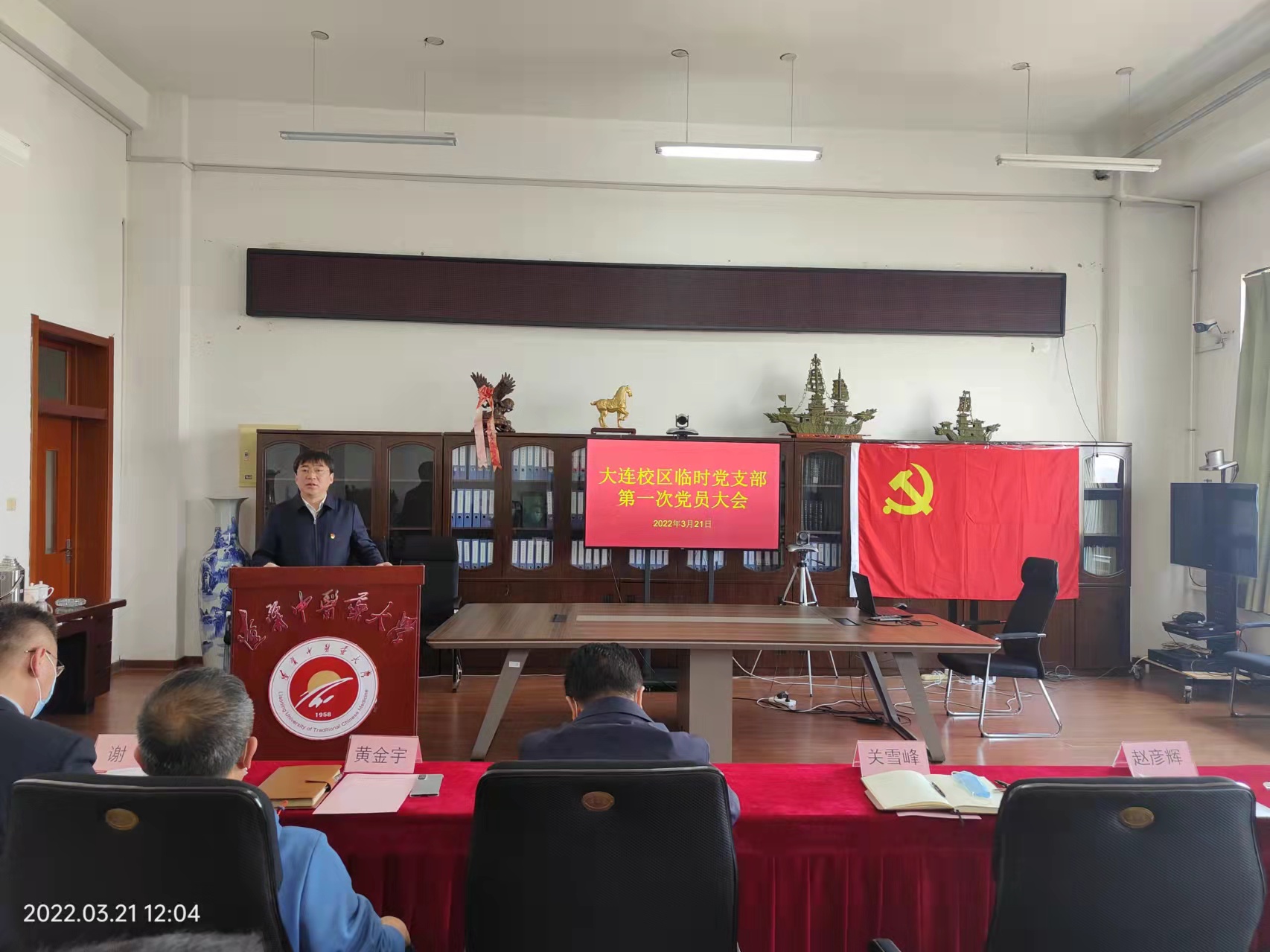 3月21日中午,大連校區(qū)臨時黨支部召開第一次黨員大會,校內(nèi)值守的黨員職工參會,會議由謝明主持。