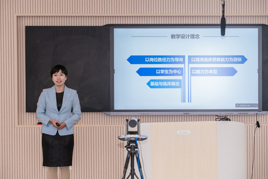 李里老師首先作了題為《痛風(fēng)》的課程展示。她通過足夠吸引人的導(dǎo)入設(shè)計(jì)及適當(dāng)?shù)牧餍性~句使學(xué)生能夠聽進(jìn)去,采取模型演示法,啟發(fā)式,互動式,案例討論等多種教學(xué)方法使學(xué)生能聽懂,授課內(nèi)容重點(diǎn)突出、時間安排合理,采用口訣小結(jié)的方式幫助學(xué)生記憶使學(xué)生能記得住。又從教學(xué)設(shè)計(jì)、課件制作、講稿書寫、課程思政、教師技能及團(tuán)隊(duì)力量等六方面進(jìn)行了教學(xué)分享。