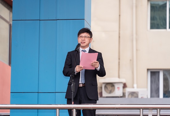 石巖作軍訓(xùn)動員講話,講話中他代表學(xué)校黨委對幫助我校完成軍訓(xùn)工作的沈陽市遼牙軍旅研學(xué)訓(xùn)練基地領(lǐng)導(dǎo)和各位教官們表示衷心的感謝!同時對本次軍訓(xùn)提出三點希望,一是要通過軍訓(xùn)將習(xí)近平總書記的深情囑托轉(zhuǎn)化為“強國有我”的磅礴力量;二是要從歷史中汲取和弘揚愛國主義精神;三是以軍訓(xùn)為契機強化自身綜合素質(zhì)。