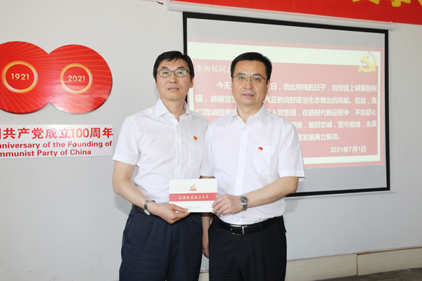 2021年7月1日,恰逢中國共產(chǎn)黨百年華誕,學(xué)校紀(jì)委書記、監(jiān)察專員張洪新同志專程到現(xiàn)場,為繼續(xù)教育學(xué)院院長李海權(quán)同志和馬克思主義學(xué)院副院長陳吉慶同志送去“政治生日”廉潔賀卡,一同回憶入黨時的心路歷程,在誠摯祝福的同時,也溫馨提示他們:時刻牢記入黨誓詞,嚴(yán)守政治紀(jì)律和政治規(guī)矩,絕對忠誠、堅守底線,永葆清廉的政治本色。