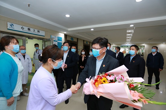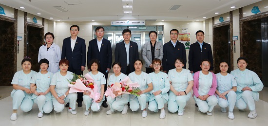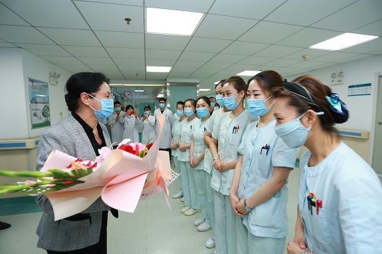 5月12日,在第110個(gè)國(guó)際護(hù)士節(jié)來臨之際,學(xué)校黨委書記石巖、校長(zhǎng)呂曉東、副校長(zhǎng)關(guān)雪峰、紀(jì)委書記張洪新一行到附屬醫(yī)院看望慰問臨床一線護(hù)理工作者。