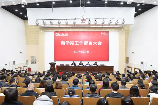 黨委書記石巖指出,在全國“兩會”勝利召開之際,學校召開2021年新學期工作部署會議,是以實際行動貫徹落實全國“兩會”精神、貫徹落實黨的十九屆五中全會精神。他結(jié)合新形勢新任務對做好新學期工作提出三點要求:一是以黨的政治建設(shè)為統(tǒng)領(lǐng),不斷提高政治站位。二是狠抓各項工作內(nèi)涵建設(shè)水平,推動學校高質(zhì)量發(fā)展。三是貫徹落實新發(fā)展理念,建立健全學校高質(zhì)量發(fā)展保障機制。