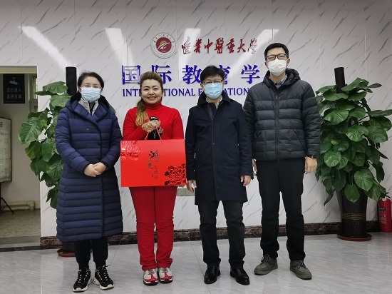 在國教交流合作處,校領(lǐng)導(dǎo)與留學(xué)生親切交談,詳細(xì)了解了春節(jié)期間留學(xué)生在校學(xué)習(xí)生活情況和假期安排,希望留學(xué)生們合理安排學(xué)習(xí)和生活,做好個(gè)人安全防護(hù)。石巖書記和呂曉東校長代表學(xué)校向留學(xué)生送去了新春的美好祝福,并贈(zèng)送了新年禮物。