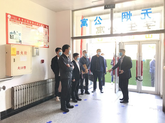曾慶捷首先代表學(xué)校致辭,對(duì)督察組的到來(lái)表示熱烈的歡迎和衷心感謝,面對(duì)即將返校復(fù)學(xué)的重要節(jié)點(diǎn),教育廳組織督察組對(duì)我校疫情防控工作和返校復(fù)學(xué)準(zhǔn)備工作給予指導(dǎo)和檢查,非常必要和及時(shí)。要求全校各部門(mén)積極配合,認(rèn)真接受檢查,嚴(yán)格按照《遼寧省高校返校復(fù)學(xué)疫情防控措施40條》文件指示精神,對(duì)存在的問(wèn)題要立行立改,層層壓實(shí)責(zé)任,確保我校的返校復(fù)學(xué)工作在教育廳的全面指導(dǎo)下安全有序開(kāi)展。學(xué)校疫情防控工作領(lǐng)導(dǎo)小組辦公室主任張文順代表學(xué)校從疫情防控工作開(kāi)展情況、學(xué)生返校復(fù)學(xué)工作準(zhǔn)備情況和貫徹落實(shí)《遼寧省高校返校復(fù)學(xué)疫情防控措施40條》文件指示精神情況向督察組進(jìn)行了工作匯報(bào)。督察組組長(zhǎng)大連交通大學(xué)黨委常委、副校長(zhǎng)趙文春代表督察組講話,在充分肯定了學(xué)校疫情防控和返校復(fù)學(xué)準(zhǔn)備工作的同時(shí),就“返校批次安排”、“防控體系搭建”、“隔離場(chǎng)所設(shè)置”以及“學(xué)生畢業(yè)安排”等具體問(wèn)題進(jìn)行了詢問(wèn),遼寧省教育廳服務(wù)業(yè)高等教育處二級(jí)調(diào)研員徐連明就學(xué)校落實(shí)《遼寧省高校返校復(fù)學(xué)疫情防控措施40條》相關(guān)內(nèi)容情況進(jìn)行了詳細(xì)提問(wèn),相關(guān)處室負(fù)責(zé)人對(duì)督察組提出的各項(xiàng)問(wèn)題進(jìn)行了匯報(bào)。 匯報(bào)結(jié)束后,督察組在學(xué)校相關(guān)處室負(fù)責(zé)人的陪同下進(jìn)行了實(shí)地查看,重點(diǎn)對(duì)學(xué)校入校測(cè)溫通道、學(xué)生公寓以及臨時(shí)隔離觀察室等疫情防控關(guān)鍵點(diǎn)位進(jìn)行了實(shí)地檢查,并給予意見(jiàn)反饋。