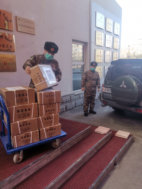 中國(guó)人民解放軍65056部隊(duì)政治處干事韓洋是我校附屬二院馳援襄陽(yáng)醫(yī)生丁曉歡的愛(ài)人。2月17日,丁曉歡帶著責(zé)任與擔(dān)當(dāng)奔赴湖北投入抗疫斗爭(zhēng)。作為軍人和家屬的韓洋向部隊(duì)領(lǐng)導(dǎo)反映了湖北襄陽(yáng)醫(yī)療團(tuán)隊(duì)的情況,中國(guó)人民解放軍65056部隊(duì)立即決定向遼寧中醫(yī)藥大學(xué)志愿抗疫團(tuán)隊(duì)支援軍用單兵作戰(zhàn)食品。體現(xiàn)了“一方有難,八方支援”“軍民魚(yú)水”的深厚情誼。