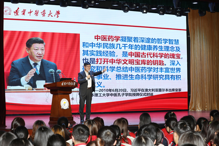 10月17日,在學(xué)校大學(xué)生活動(dòng)中心,學(xué)校黨委副書(shū)記,校長(zhǎng)石巖教授,為2019級(jí)新生作題為“愛(ài)上中醫(yī),讓愛(ài)傳遞”主題報(bào)告,為全體新生在正式開(kāi)啟大學(xué)學(xué)習(xí)生涯之際,上好大學(xué)第一課。學(xué)校各學(xué)院2019級(jí)新生代表、輔導(dǎo)員、各部門(mén)領(lǐng)導(dǎo)等900余人參會(huì)。