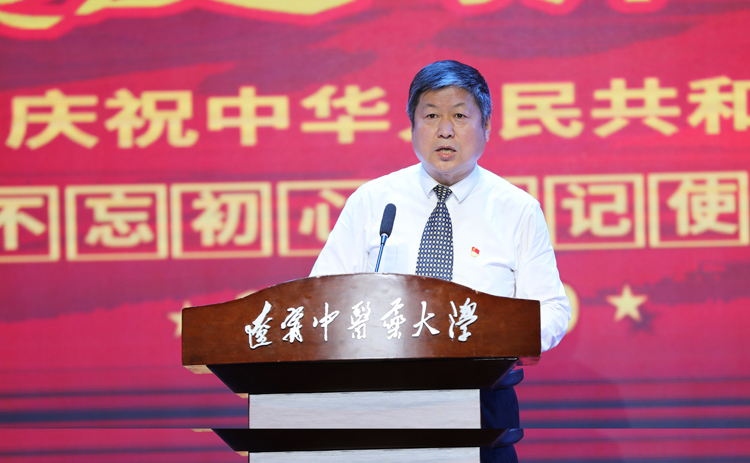 曾慶捷在大會上發(fā)表重要講話。他指出,正值舉國上下喜迎中華人民共和國成立70周年和全黨上下深入開展“不忘初心、牢記使命”主題教育之際,代表學校黨委熱烈慶祝新中國成立70周年,并向祖國表達誠摯的祝福和美好的祝愿。建校61年來,學校堅持黨的領導,堅持社會主義辦學方向,堅持黨的教育方針,秉承“厚德博學、繼承創(chuàng)新”校訓精神,歷經幾代人辛勤耕耘和不懈奮斗,開創(chuàng)了遼寧中醫(yī)發(fā)展的新篇章。
