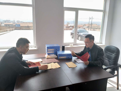 (遼寧中醫(yī)藥大學(xué)扶貧干部邵洪偉與陳旭研究貧困戶建檔工作)