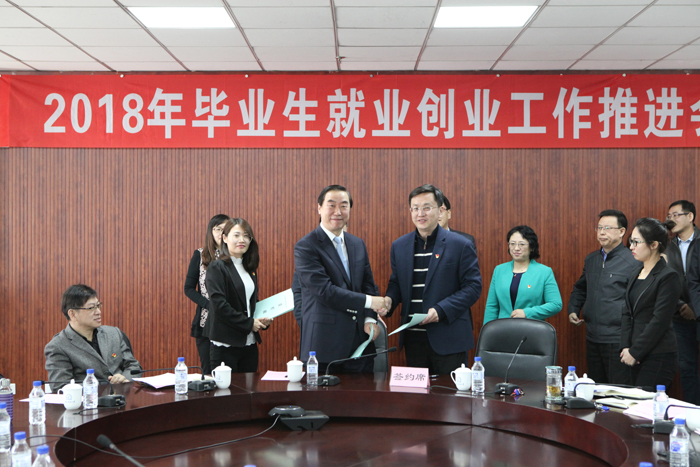 為進一步落實工作目標(biāo)和任務(wù),楊關(guān)林現(xiàn)場與各學(xué)院書記簽訂就業(yè)創(chuàng)業(yè)工作目標(biāo)責(zé)任狀。
