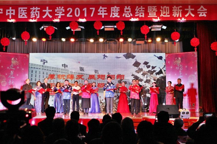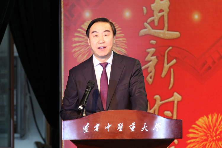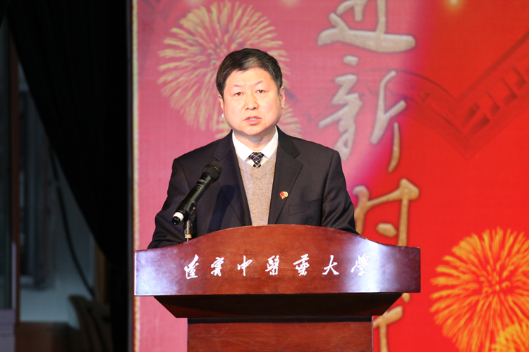 校長楊關(guān)林做了題為《不忘初心、牢記使命、迎接中醫(yī)藥發(fā)展新輝煌》的致辭,他回顧了2017年學校工作取得的成績與歷史性突破,對全校師生的拼搏付出表示感謝,并對學校2018年的工作提出了“不忘初心、心平氣和、和而不同、同氣連枝、枝繁葉茂、貌美甲子、自愛不自貴”七個方面的希望,鼓勵全校師生在十九大精神的指引下,不忘振興中醫(yī)藥事業(yè)的初心,團結(jié)奮進、創(chuàng)新實干、立足本崗、積極奉獻,切實擔負起改革發(fā)展重任,以更新更好的成績譜寫2018年的輝煌篇章。