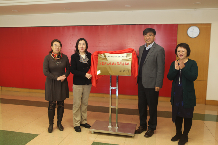 (雙方領(lǐng)導(dǎo)為“中醫(yī)藥文化進(jìn)校園科普基地”揭牌)
