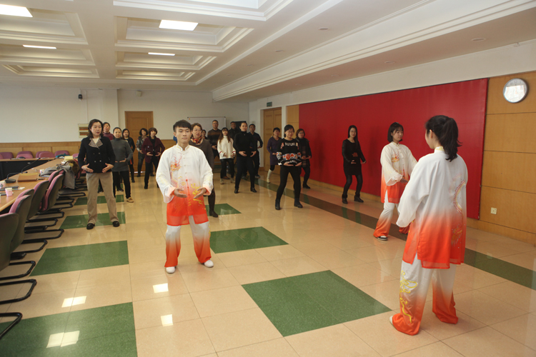 (針灸推拿學(xué)院功法隊(duì)學(xué)生志愿者展示并講解中醫(yī)養(yǎng)生八段錦)