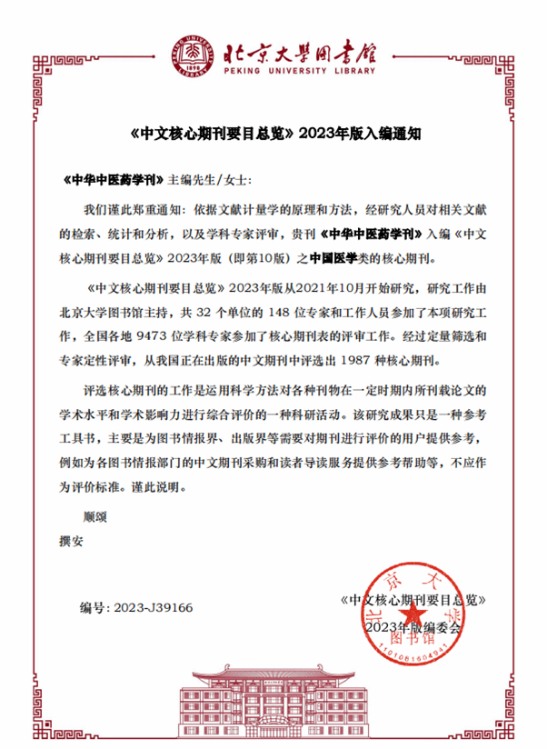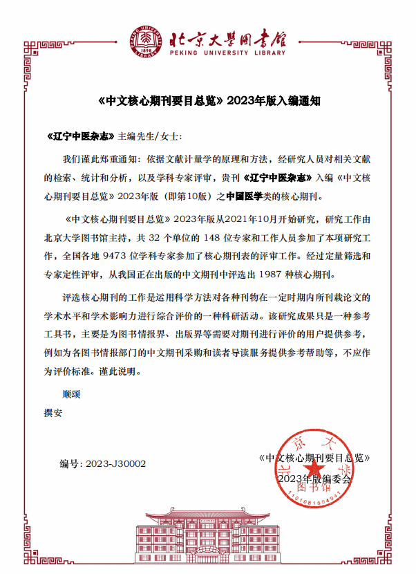 12月26日,北京大學圖書館、《中文核心期刊要目總覽》2023年版編委會發(fā)布通知,我校主辦期刊《中華中醫(yī)藥學刊》與《遼寧中醫(yī)雜志》入編《中文核心期刊要目總覽》2023年版(即第10版)之中國醫(yī)學類的核心期刊。