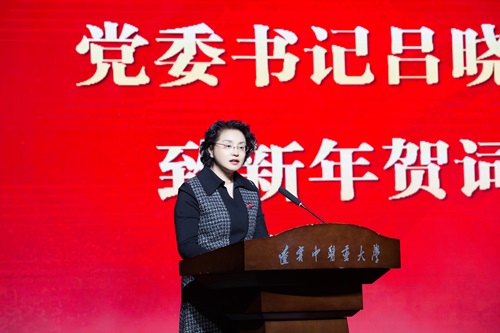 呂曉東代表學(xué)校黨委致新年賀詞,向全校教職員工、青年學(xué)生、離退休老同志、海內(nèi)外校友致以新年的問候和誠摯的祝福,向長(zhǎng)期關(guān)心支持學(xué)校發(fā)展的社會(huì)各界朋友致以衷心的感謝和美好的祝愿。