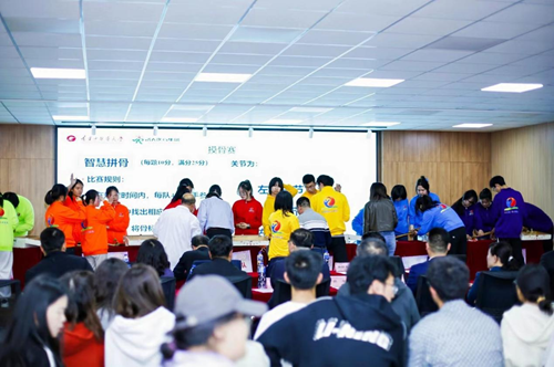 本次大賽設(shè)有必答題、搶答題以及摸骨賽三個(gè)決賽環(huán)節(jié),現(xiàn)場氣氛熱烈,參賽隊(duì)員全心投入,展現(xiàn)出扎實(shí)的理論基礎(chǔ)和過硬的技能本領(lǐng)。經(jīng)過激烈角逐,“大醫(yī)精誠隊(duì)”摘得桂冠,獲得一等獎(jiǎng);“醫(yī)路前行隊(duì)”、“鯤鵬展翅隊(duì)”獲得二等獎(jiǎng);“所向披靡隊(duì)”、“天道酬勤隊(duì)”、“勇往直前隊(duì)”獲得三等獎(jiǎng)。比賽過后中西醫(yī)結(jié)合學(xué)院學(xué)生為大賽獻(xiàn)上《歌唱祖國》歌曲表演。