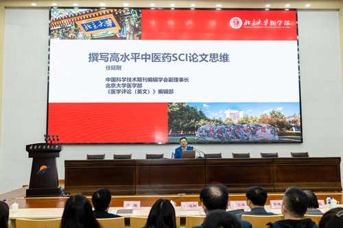 三位教授分別以《撰寫高水平中醫(yī)藥SCI論文寫作思維》《創(chuàng)新蛋白質藥物的設計合成》《如何撰寫一篇好的SCI科研文章淺談》為主旨報告,與我校師生進行分享。任延剛教授圍繞如何提高高水平中醫(yī)藥SCI論文的寫作思維,分別介紹了中醫(yī)藥SCI論文的寫作特點、國際發(fā)展趨勢和中醫(yī)藥SCI論文的發(fā)表類型等,指出撰寫高水平中醫(yī)藥論文應該遵循SCI的規(guī)則。高衛(wèi)平教授提出了蛋白質藥物面臨的問題與挑戰(zhàn),并以問題為導向,提出了蛋白質-高分子精準偶聯(lián)及智能化的關鍵問題和進一步的研究思路,其創(chuàng)新研究成果廣泛轉化應用于腫瘤等重大疾病的診療方面。雷健波教授以優(yōu)質、高分的SCI論文為例,詳盡地梳理了撰寫一篇完整的高水平論文的結構框架和各部分可能出現(xiàn)的細節(jié)問題,并指出一篇好文章應該明確選題的重要性,充分展現(xiàn)文章價值。