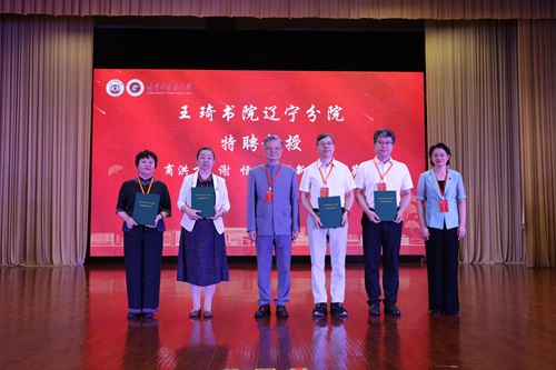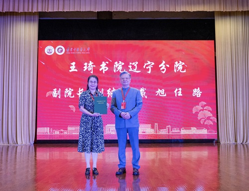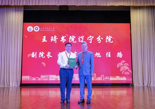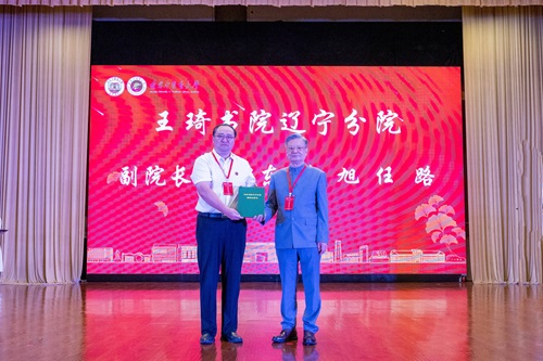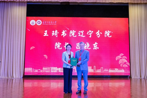 王琦與呂曉東為遼寧分院特聘教授頒發(fā)聘書。