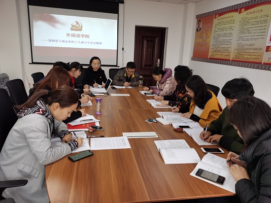 為深入學(xué)習(xí)貫徹黨的十九屆五中全會(huì)精神,準(zhǔn)確把握全會(huì)的精神實(shí)質(zhì)和重大部署,外國語學(xué)院黨總支組織全體黨員開展專題學(xué)習(xí)。