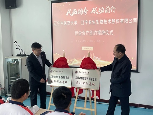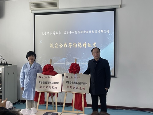 3月20日下午,實驗動物醫(yī)學與科學學院與遼寧長生生物技術(shù)股份有限公司、遼寧千一測試評價科技發(fā)展有限公司舉行校企合作揭牌儀式。學院院長王春田和遼寧長生公司總經(jīng)理王洪梁、遼寧千一公司總經(jīng)理王智琴博士分別代表雙方共同為學院“實習實訓基地”、“創(chuàng)新創(chuàng)業(yè)基地”揭牌。遼寧長生公司市場部經(jīng)理任嬌、遼寧千一公司經(jīng)營管理總監(jiān)左超、學院副院長周陽、吳運譜、辦公室主任寧天一、全體學業(yè)導師及2023級實驗動物學學生參加揭牌儀式。