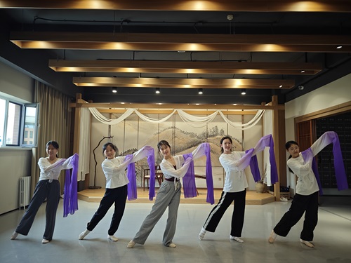 活動(dòng)中,來(lái)自舞蹈與形體實(shí)踐工作坊的同學(xué)們共同排練古典舞《款冬花》?!犊疃ā愤@部舞蹈作品,其名字取自一味中草藥,舞蹈通過(guò)優(yōu)美的姿態(tài)和婉轉(zhuǎn)的音樂(lè),展現(xiàn)了款冬花獨(dú)特的生長(zhǎng)過(guò)程與藥用價(jià)值。舞蹈編排巧妙地融合了古典與現(xiàn)代元素,既保留了傳統(tǒng)舞蹈的韻味,又注入了現(xiàn)代藝術(shù)的創(chuàng)新氣息。