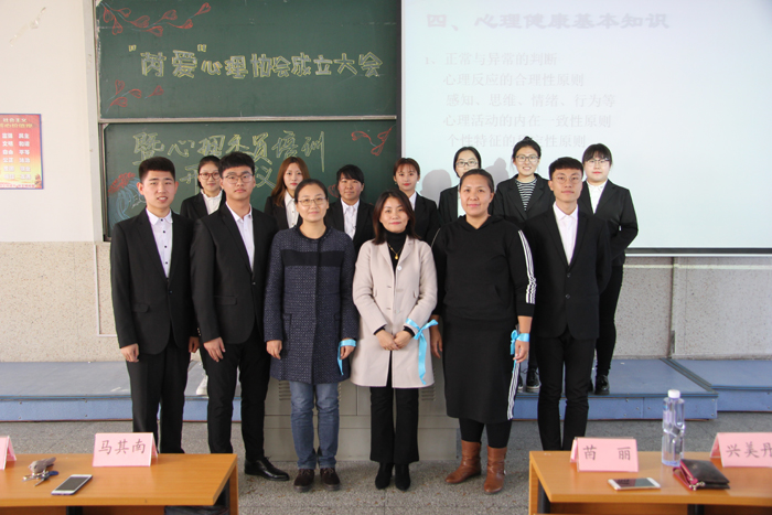 (學(xué)院老師與心理協(xié)會學(xué)生合影)