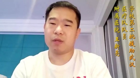 直播課中,當(dāng)我看到援鄂歸來(lái)的我校醫(yī)護(hù)人員和工作者將自己的經(jīng)歷和感受娓娓道來(lái)時(shí),心里有種說(shuō)不出的巨大感動(dòng)。我堅(jiān)信,有中國(guó)共產(chǎn)黨的堅(jiān)強(qiáng)領(lǐng)導(dǎo),有中國(guó)特色社會(huì)主義制度的巨大優(yōu)勢(shì),偉大的中國(guó)人民團(tuán)結(jié)一心,眾志成城,必將贏得最終的勝利!——外國(guó)語(yǔ)學(xué)院 2018級(jí)英語(yǔ)學(xué)專業(yè) 喬玉