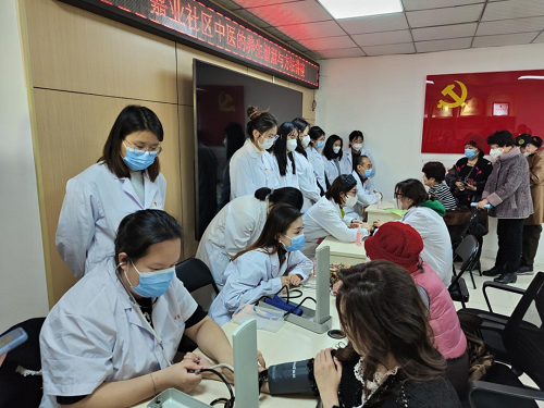 學(xué)生志愿者們?yōu)榫用駵y量血壓并耐心解答居民們的健康問題,不僅普及了健康知識,還提高了大眾對中醫(yī)的正確認(rèn)知,對推廣中醫(yī)藥起到積極的作用。