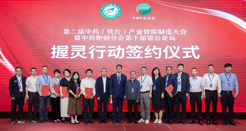 大會(huì)開(kāi)幕式后第一項(xiàng)活動(dòng)是“握靈行動(dòng)”簽約儀式,參會(huì)多家高校、中藥飲片企業(yè)、智能設(shè)備制造企業(yè)代表交叉簽署了7項(xiàng)合作協(xié)議,作為“握靈行動(dòng)”實(shí)施的第一期項(xiàng)目。