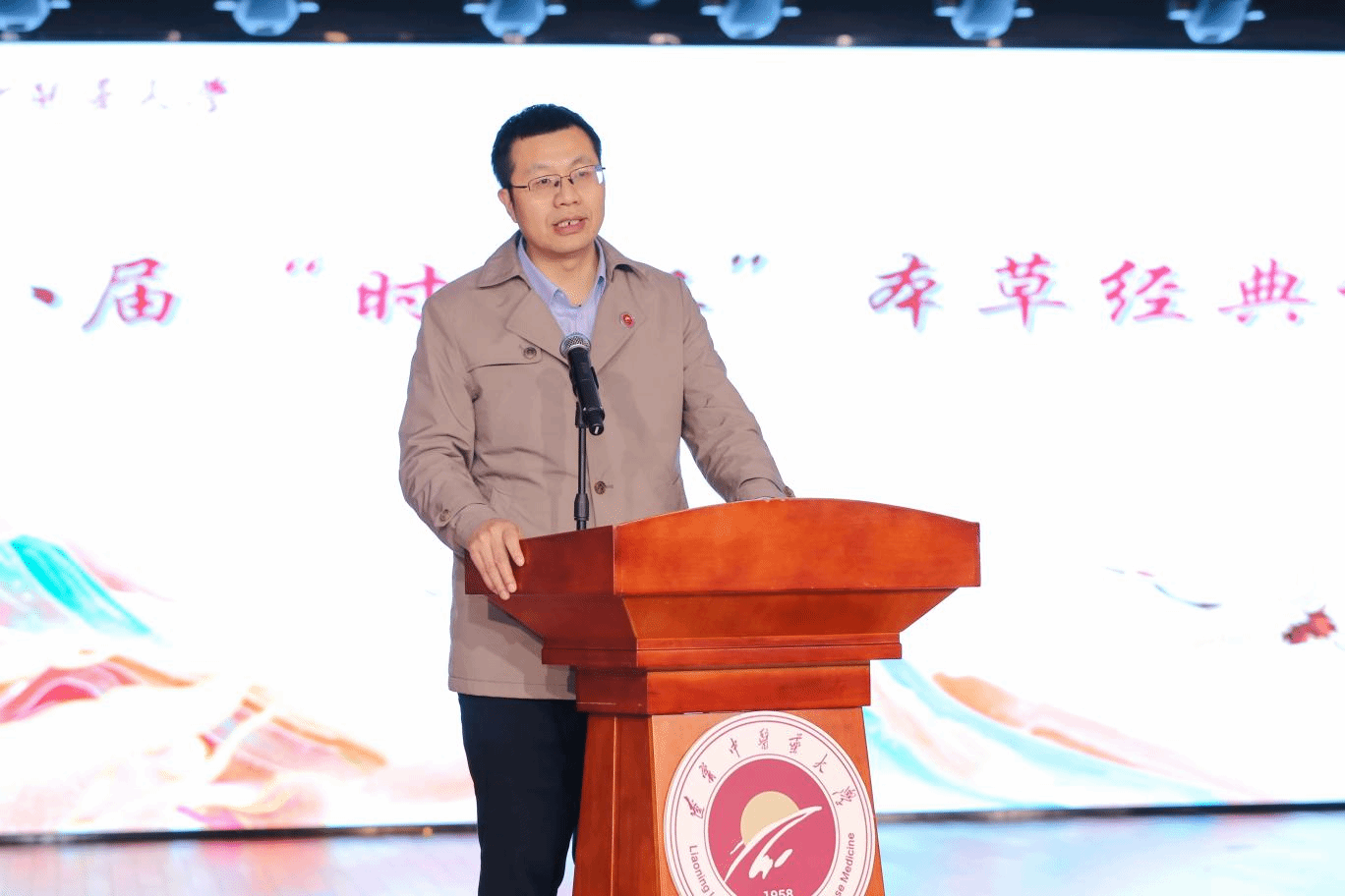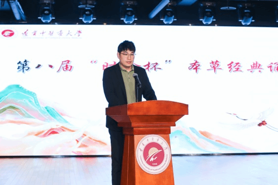 許海玉致辭,他指出,大賽歷經(jīng)多年發(fā)展,已成為藥學(xué)院傳承中醫(yī)藥文化的重要載體,賽事是學(xué)校落實立德樹人根本任務(wù)、推動中醫(yī)藥文化傳承創(chuàng)新發(fā)展的重要實踐,展現(xiàn)了學(xué)校對弘揚中醫(yī)藥文化、培養(yǎng)高素質(zhì)人才的高度重視。