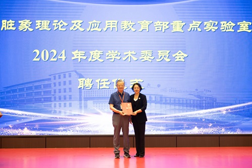 呂曉東為王琦頒發(fā)中醫(yī)臟象理論及應(yīng)用教育部重點(diǎn)實(shí)驗(yàn)室/心腦合病中西醫(yī)結(jié)合防治技術(shù)國(guó)家地方聯(lián)合工程實(shí)驗(yàn)室學(xué)術(shù)委員會(huì)主任聘書。