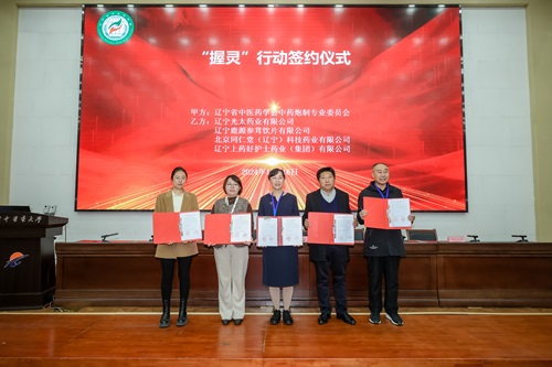 會(huì)上舉行了“握靈”行動(dòng)簽約儀式。專委會(huì)副秘書長(zhǎng)張凡介紹了“握靈”行動(dòng)的由來(lái),并宣讀合作計(jì)劃?!拔侦`”行動(dòng)是賈天柱老師在2024年全國(guó)中藥炮制分會(huì)學(xué)術(shù)年會(huì)上提出的,為實(shí)現(xiàn)飲片產(chǎn)業(yè)的高質(zhì)量發(fā)展,加強(qiáng)“產(chǎn)學(xué)研”合作,取自《握靈本草》,亦有握手即靈之意。遼寧省中藥炮制專委會(huì)在全國(guó)率先開展此活動(dòng)。高慧與遼寧光太藥業(yè)有限公司、遼寧鹿源參茸飲片有限公司、北京同仁堂(遼寧)科技藥業(yè)有限公司及遼寧上藥好護(hù)士藥業(yè)(集團(tuán))有限公司代表進(jìn)行簽約。