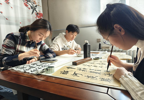 在繪畫與書法實(shí)踐工作坊中,同學(xué)們圍坐在一起,專注地?fù)]毫潑墨、描繪丹青,以國(guó)粹藝術(shù)為主題,創(chuàng)作了一幅幅精美的書畫作品。書法作品中,有的字體剛勁有力,有的則飄逸灑脫,一筆一劃都展現(xiàn)出同學(xué)們深厚的書法功底;繪畫作品更是豐富多彩,山水、花鳥、人物等題材應(yīng)有盡有,同學(xué)們用畫筆勾勒出心中的美好世界,表達(dá)對(duì)國(guó)粹藝術(shù)的理解與熱愛(ài)?;顒?dòng)結(jié)束后,這些優(yōu)秀的書畫作品被整理展示,成為校園內(nèi)一道亮麗的風(fēng)景線。
