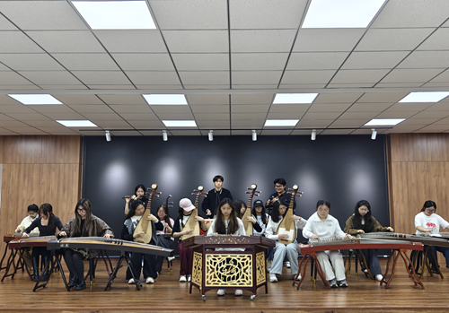 本次活動(dòng)的重頭戲是民樂與器樂美育實(shí)踐工作坊的排練。在教師的帶領(lǐng)下,同學(xué)們?nèi)硇耐度?,《霍元甲》的雄渾激昂,仿佛帶領(lǐng)大家穿越回那個(gè)英雄輩出的年代,感受民族精神的激蕩;《云宮迅音》則以其獨(dú)特的旋律和節(jié)奏,展示了古風(fēng)與現(xiàn)代的巧妙融合,讓人仿佛置身于云宮之中,體驗(yàn)了一次奇妙的音樂之旅。