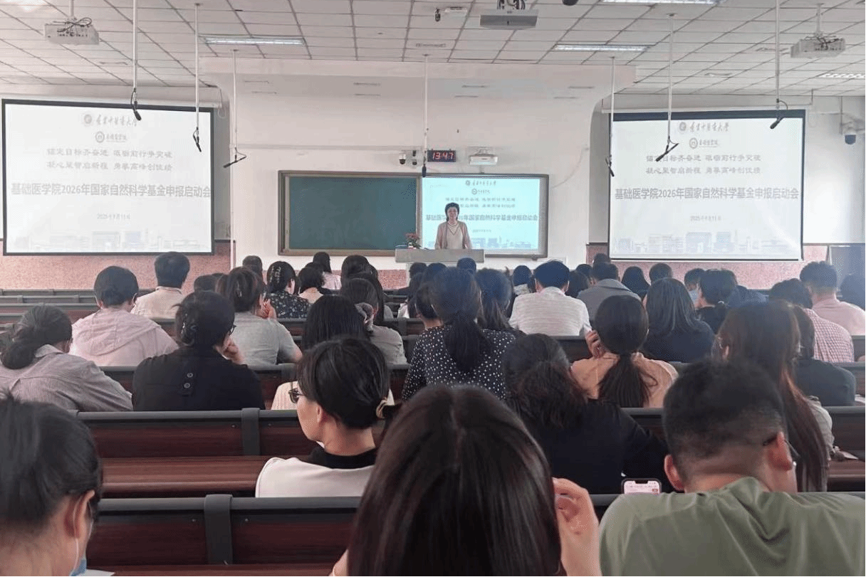 9月11日,基礎(chǔ)醫(yī)學(xué)院2026年國家自然科學(xué)基金項目申報啟動會暨國家自然科學(xué)基金項目申報思路匯報會在華佗樓召開。學(xué)院院長戰(zhàn)麗彬、副院長鄧洋洋、副院長陳智慧、指導(dǎo)專家、教研室主任、教研室秘書、全院無課教師以及科研辦公室工作人員參加會議。