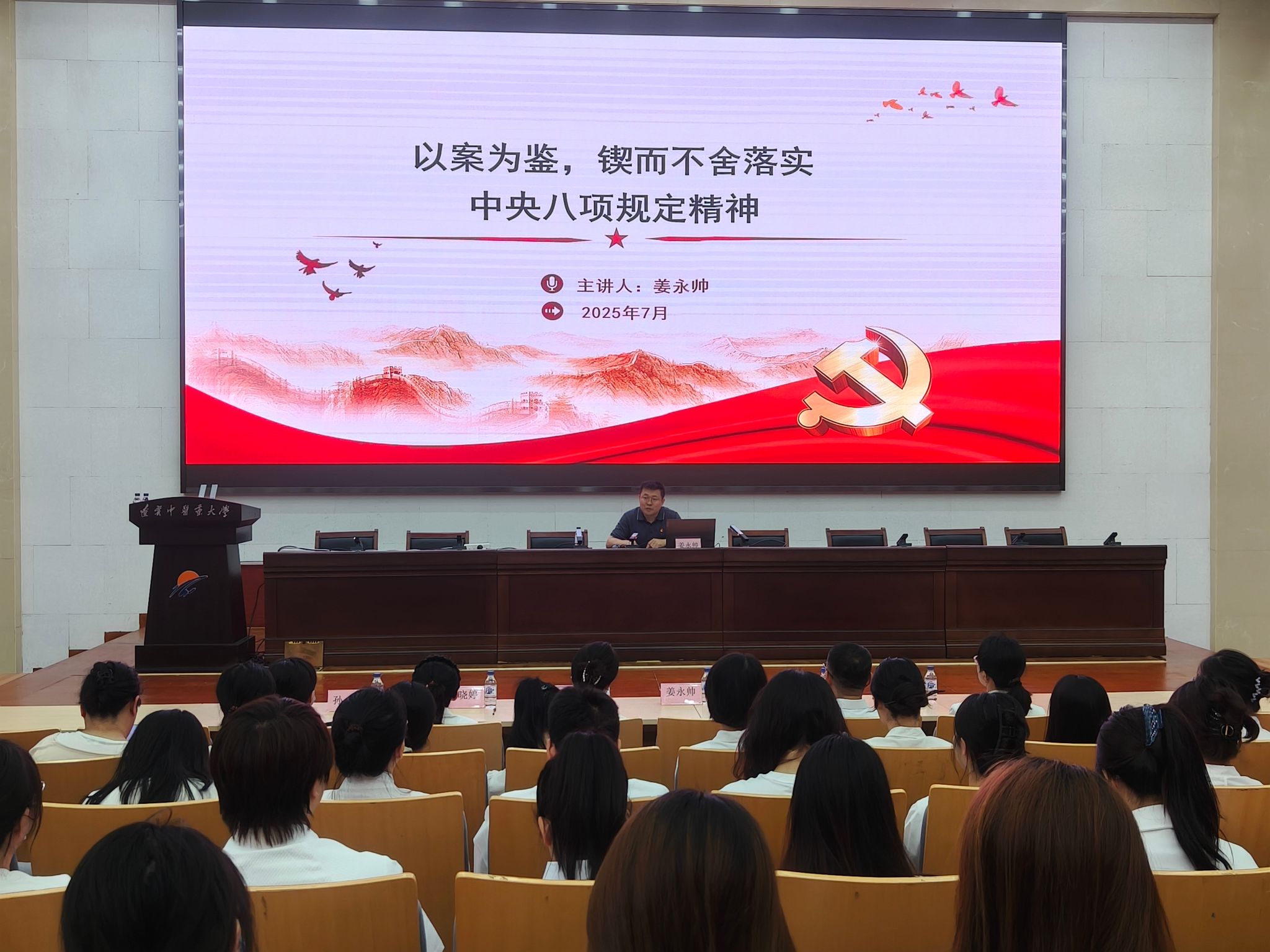 黨課結(jié)束后,范艷代表黨總支黨校祝賀全體學(xué)員們圓滿(mǎn)完成學(xué)習(xí)任務(wù),充分肯定學(xué)員們展現(xiàn)的政治自覺(jué)與勤學(xué)作風(fēng),并提出了三點(diǎn)期望:一是做理論扎根的“提燈人”。要把黨校所學(xué)化為“信仰之燈”,常照黨章明方向,勤對(duì)誓詞礪初心;二是做知行合一的“破壁者”。要破除“學(xué)用脫節(jié)”堅(jiān)冰,架起“黨建業(yè)務(wù)”橋梁,讓紅色基因在三尺講臺(tái)與白衣使命中煥發(fā)新生;三是做星火燎原的“播種者”。全體黨員特別是實(shí)習(xí)在即的學(xué)員,要做黨的創(chuàng)新理論踐行先鋒,讓真理之種在服務(wù)崗位上生根開(kāi)花。